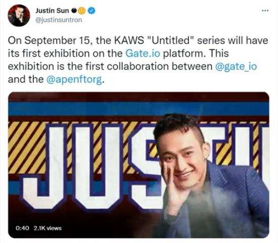 9月14日,波场TRON创始人孙宇晨发布推文表示,15日会做客Gate.io「动态」, 助力APENFT基金会推出的致敬KAWS系列盲盒售卖活动。在孙宇晨做客Gate.io「动态」期间,社群用户还可与孙宇晨进行交流互动。