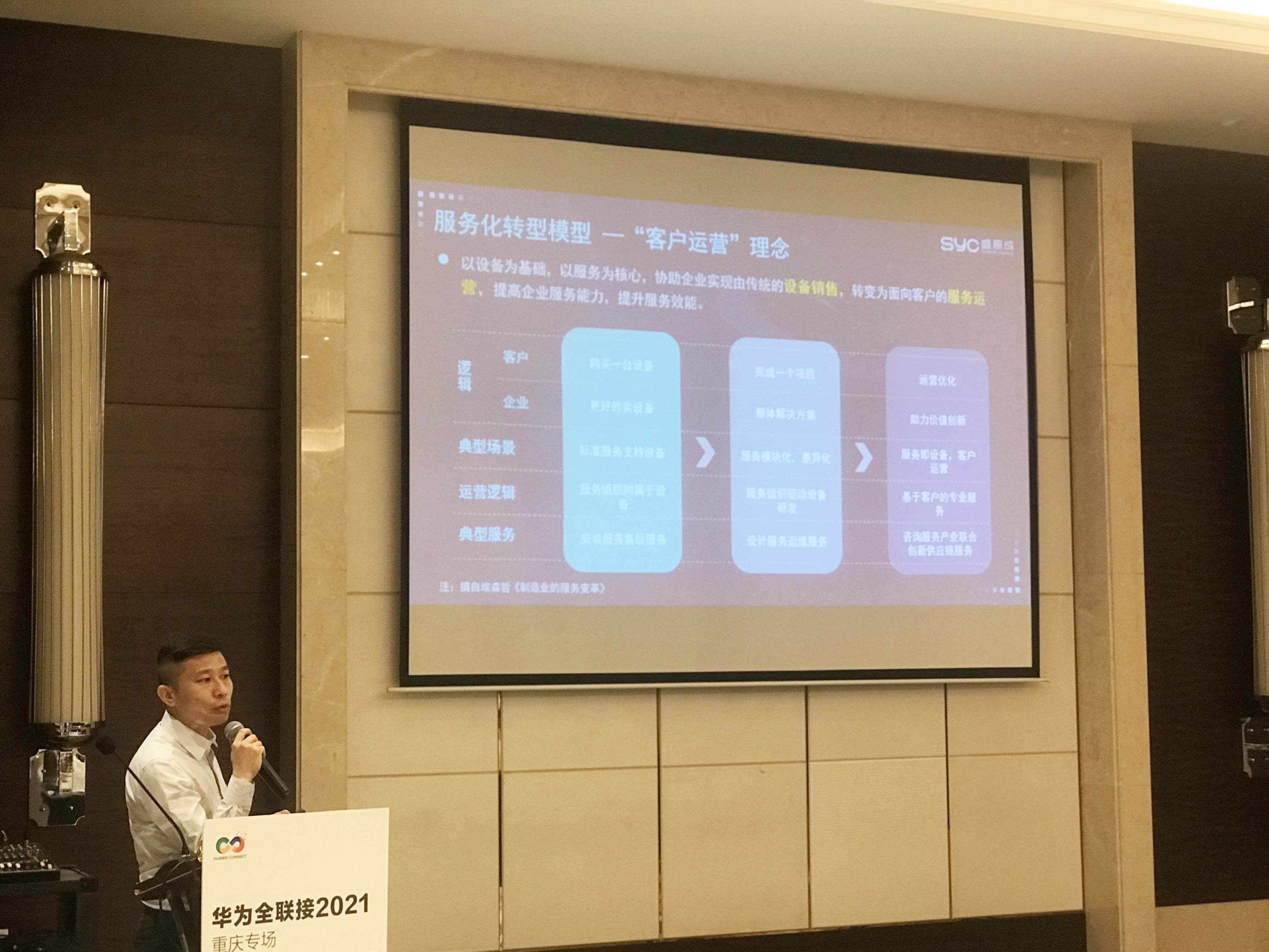 作为华为云生态合作伙伴,广州盛原成科技有限公司市场部总监虞跃在大会上分享了在装备行业企业数字化转型路径探索,他认为,装备数字化将成为装备行业转型升级的基础,给设备装上“大脑”、对设备实现全生命周期管理是装备行业未来发展的方向。