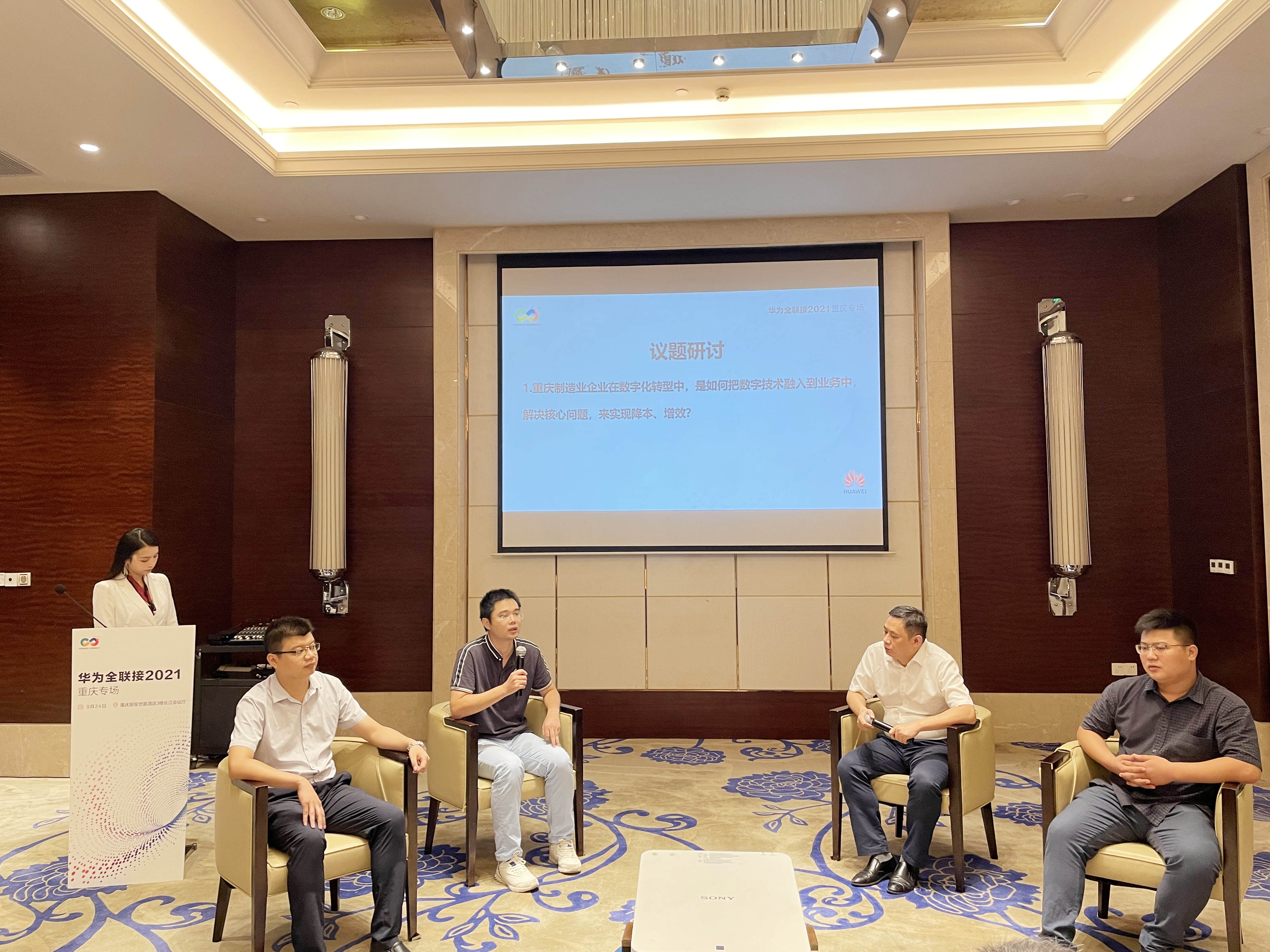 在议题讨论环节,中国信息通信研究院西部分院陈云选、华为技术有限公司徐勇、重庆通用工业(集团)有限责任公司吴卿、重庆黑湖网络科技有限公司李然围绕“十四五”规划下,重庆制造业高质量发展的“制胜之匙””主题开展对话,交流新技术、新成果,共同探讨提质发展工业互联网、高质量推动制造业数字化转型之道。