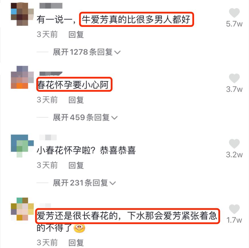 “牛爱芳的小春花”在过去3个月里涨粉230万。她的视频以美食为切口,展现了小春花一家人的日常农作生活。网友在评论区,时而夸奖丈夫爱芳疼爱春花,时而责怪春花对爸爸不如对丈夫上心,还会时刻提醒婆婆不要让怀孕的春花干重活。看着春花从结婚、怀孕到生二胎,用户仿佛追了一部短视频版的《乡村爱情》。