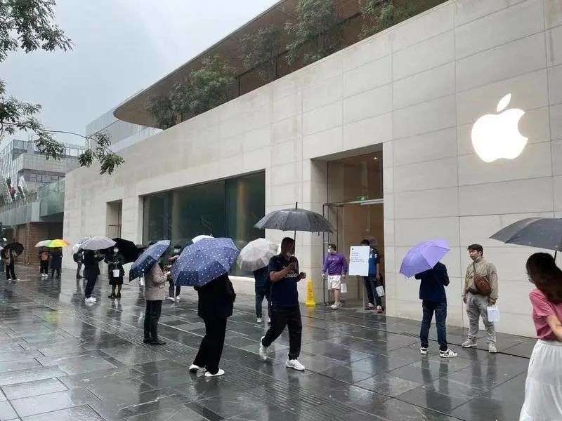 9月24日,北京下着小雨,并且是工作日,但是各大Apple Store门口却排起了长长的队伍。这是iPhone 13开卖的第一天,有用户早上五点多就来到了苹果官方店排队。由于前来预约取货的人数太多,三里屯的Apple Store只接受预约取货的消费者进店,普通用户不能进店。