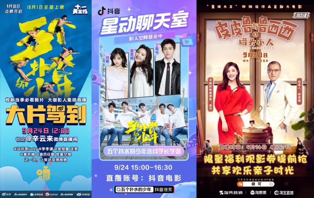 大档期竞争需配以大规模的宣发阵仗,每年如国庆档、春节档的宣发比拼也向来非常精彩,看向 今年国庆档的宣发情况,依然是双线并行的模式,同时重心明显向线上转移,这既是行业趋势,也一定程度受到各地不同疫情影响所采取的有效应对措施,如云首映、直播售票等线上活动的进行。不过相比往年的宣发规模,今年国庆档显然也有所压缩。