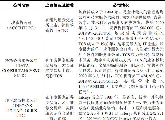 主营业务具体分为三部分:一是软件与数字技术服务,为客户提供IT等方面指导,提供咨询和解决方案,主要是项目外包业务和咨询服务等,主要竞争对手有埃哲森、中软国际等。
