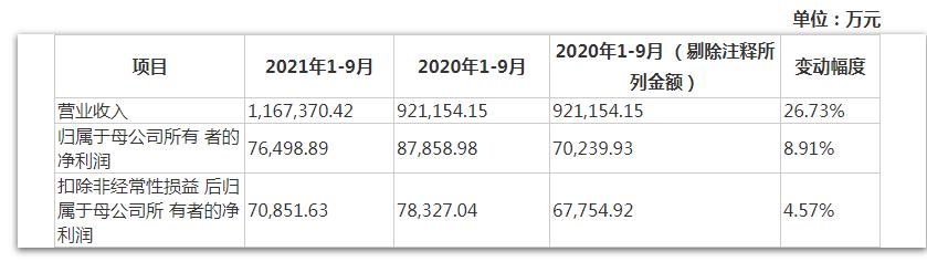 此外,在招股书中,公司预计2021年前三季度公司共实现营业收入116.74亿元,同比增长26.73%;实现净利润7.65亿元,同比增长8.91%。
