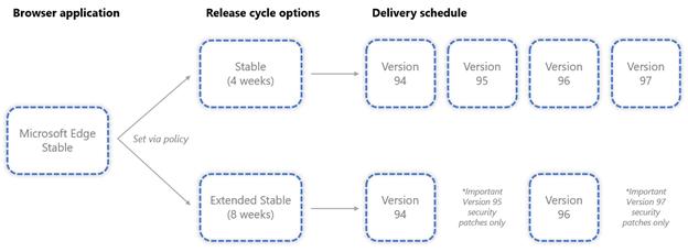 本月,Chrome 和 Edge 正式迎来 4 周一次的全新稳定版更新周期,相比此前(6 周一次)节奏加快了不少。为此,Edge 也从本次更新开始面向企业用户推出了「扩展稳定更新选项」,允许企业用户通过组策略部署的方式将更新周期手动调整为 8 周一次。