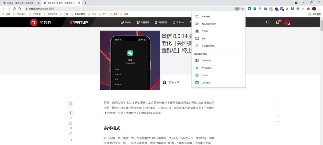 相比 Edge 很早之前就开始改造分享中心,Chrome 对浏览器分享功能的改造可谓是先发后至,不过在 Chrome 94 中好歹还是上线了。