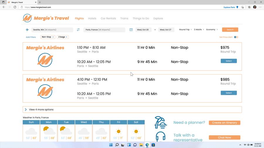 与之类似的,你还可以让 Edge 94 来帮助你规划你的旅行和假期,比如通过为旅行目的地提供建议来帮助制定旅行计划、搜索航班时可以在地址栏看到对应地点的餐厅以及观光建议等等。同样是国内几乎用不上的功能。