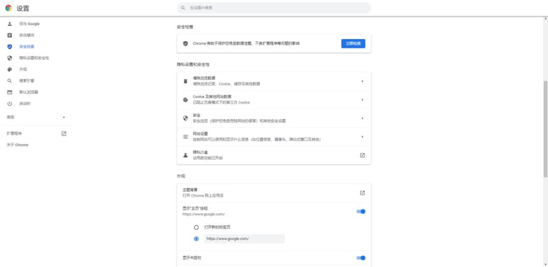 Chrome 设置中心页面在本次稳定版更新后开始启用全新的设计样式。或许是 Google 为了统一 Chrome 的界面以及相关设计元素,新版移除了原先设置页面上方的蓝色顶部通栏,转而采用和 Chrome OS 一致的纯色设计,原先较为冗长的设置项目现在也被有意梳理成了更加直观、易懂的不同设置区域,通过侧边栏即可进行导览。这些更新其实也可以看作是 Google WebUI 设计改造的一部分。