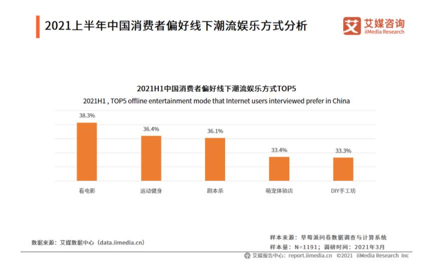 首先是时代背景。在疫情肆虐全球的时代大背景下,疫情除了影响人们和正常生活和社会生产活动外,还影响到人的心理,使部分人的心理变得更为沉闷和压抑。以此为背景,最近剧本杀行业的火热,侧面说明了许多人通过一些途径释放内心的压力,根据艾媒咨询的数据显示,在2021年上半年中国消费者偏好的线下潮流娱乐方式调查中,剧本杀仅次于看电影和运动健身。