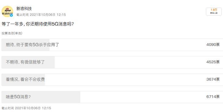 这距离三大运营商发布5G消息白皮书,宣布传统短信升级,已过去一年半之久。在新浪科技所做的一项微博调查中,只有27.2%的网友对5G消息表示期待。