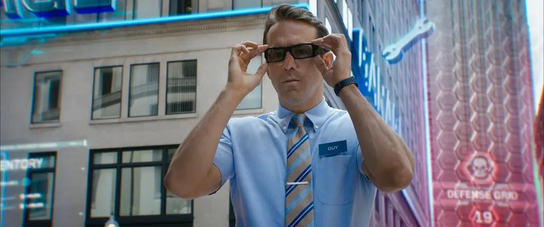 电影《失控玩家》中,男主角盖伊带上墨镜后,便进入网络游戏世界。