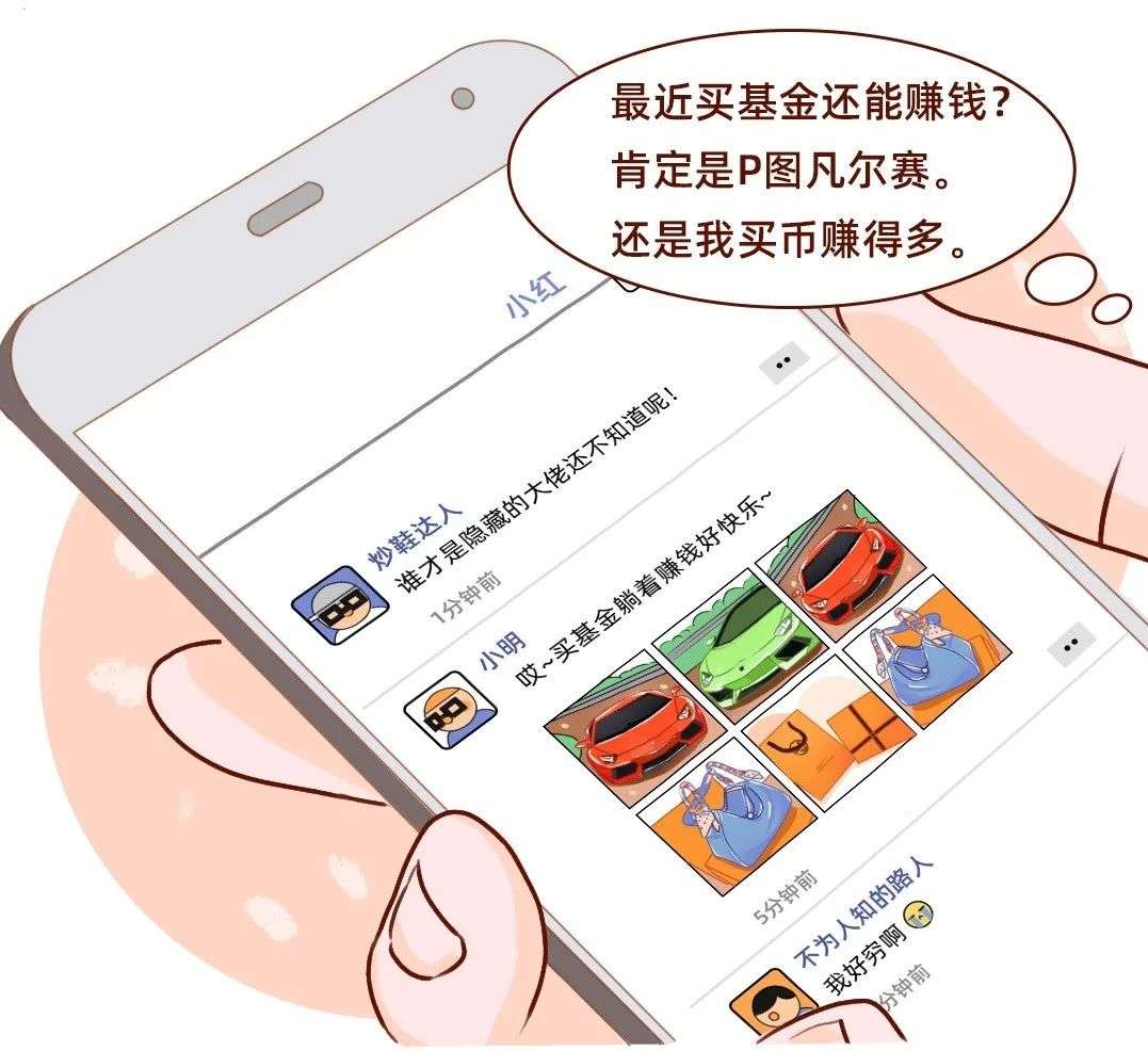 最近,小明买基金赚了不少钱,开始膨胀了,开始在朋友圈里晒豪车、晒爱马仕。小红表示不服,“最近买基金还能赚钱?肯定是P图凡尔赛。还是我买币赚得多。”炒鞋达人小孟就更不服,谁才是隐藏的大佬还不知道呢!