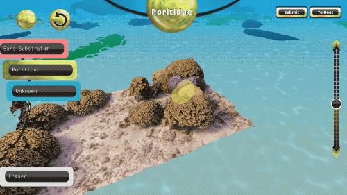 NASA 使用「流体镜头相机」监测珊瑚生态系统,但手动分析缓慢而费力,所以它以游戏的方式求助于玩家,玩家通过 3D 图像识别和分类珊瑚,并乘坐鹦鹉螺号在海洋中虚拟航行。NASA 则汇集游戏玩家在服务器上所做的分类,快速地将大量以人类识别为中心的研究样本提供给超级计算机,绘制出更精确的珊瑚分布图。