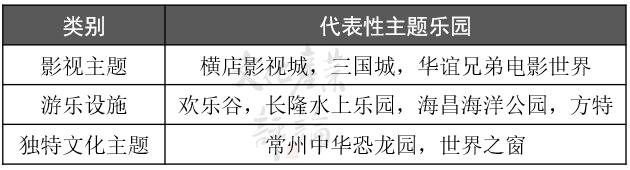 其中影视主题的乐园大都是影视基地转变而来,例如横店影视城和无锡三国影视城。他们现在仍然承担着作为影视基地的重要作用,作为主题乐园提供参观游览的服务只是其附属的功能。华谊兄弟电影世界是其中的特例。