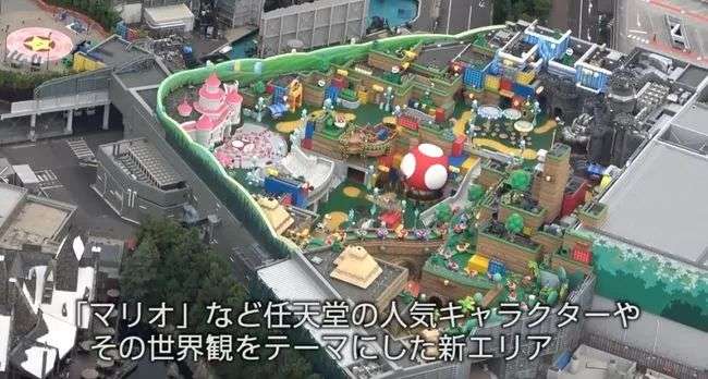 2021年,在因疫情经历多次延期后,任天堂宣布超级任天堂世界主题乐园(Super Nintendo World)正式开园。园区内拥有任天堂旗下以马里奥游戏为主的主题设施,旋转金币、BOSS库巴、绿色水管,以及蘑菇王国、桃子城堡等等,看起来就像一个活生生的马里奥游戏。园区游客需要带上特殊手表与园区景观进行互动,在体验上更像是进行线下的马里奥游戏。