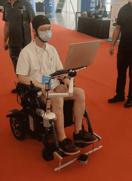 戴上脑机接口帽子可以靠意念操控轮椅,让手脚都不方便的人也能自主出行,不过研究还处于早期阶段,目前还没做到连续移动,只能一段一段的“挪”。