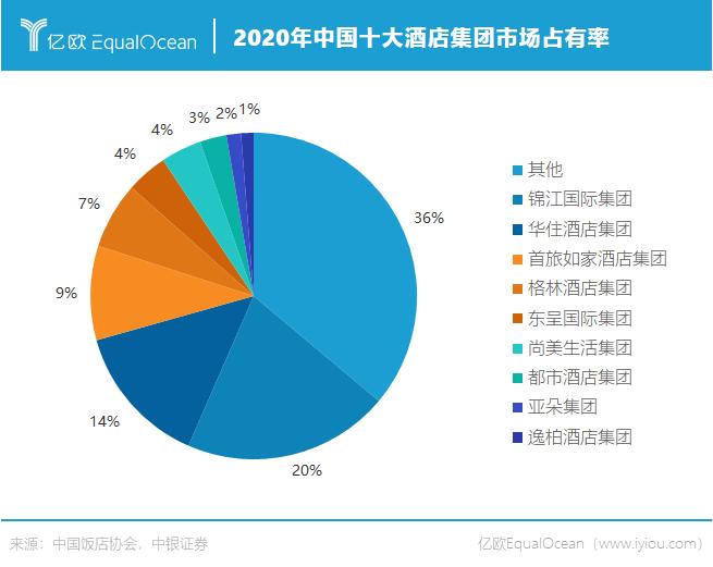据中国饭店协会发布的《2021年中国酒店集团TOP50报告》,2020年排名前三的酒店集团为锦江国际集团、华住酒店集团和首旅如家酒店集团,分别拥有94.65万间、65.22万间和43.25万间客房,同比增势明显;前十大酒店集团市占率增长至64.35%,市场集中度进一步提升。