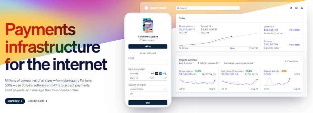 Stripe是一家为互联网建设经济基础设施的科技公司。各种规模的企业——从初创企业到上市公司——都可以使用的软件,接受支付并在线管理他们的业务。