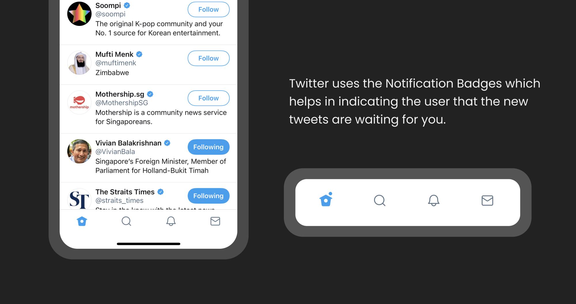 你看到了文章最后,我多讲一条,就是在你的App导航栏内使用通知标记(小点),Twitter用了,youtube用了,Pinterest用了,几乎所有的App都使用了它,能帮助获得更好的用户参与度。