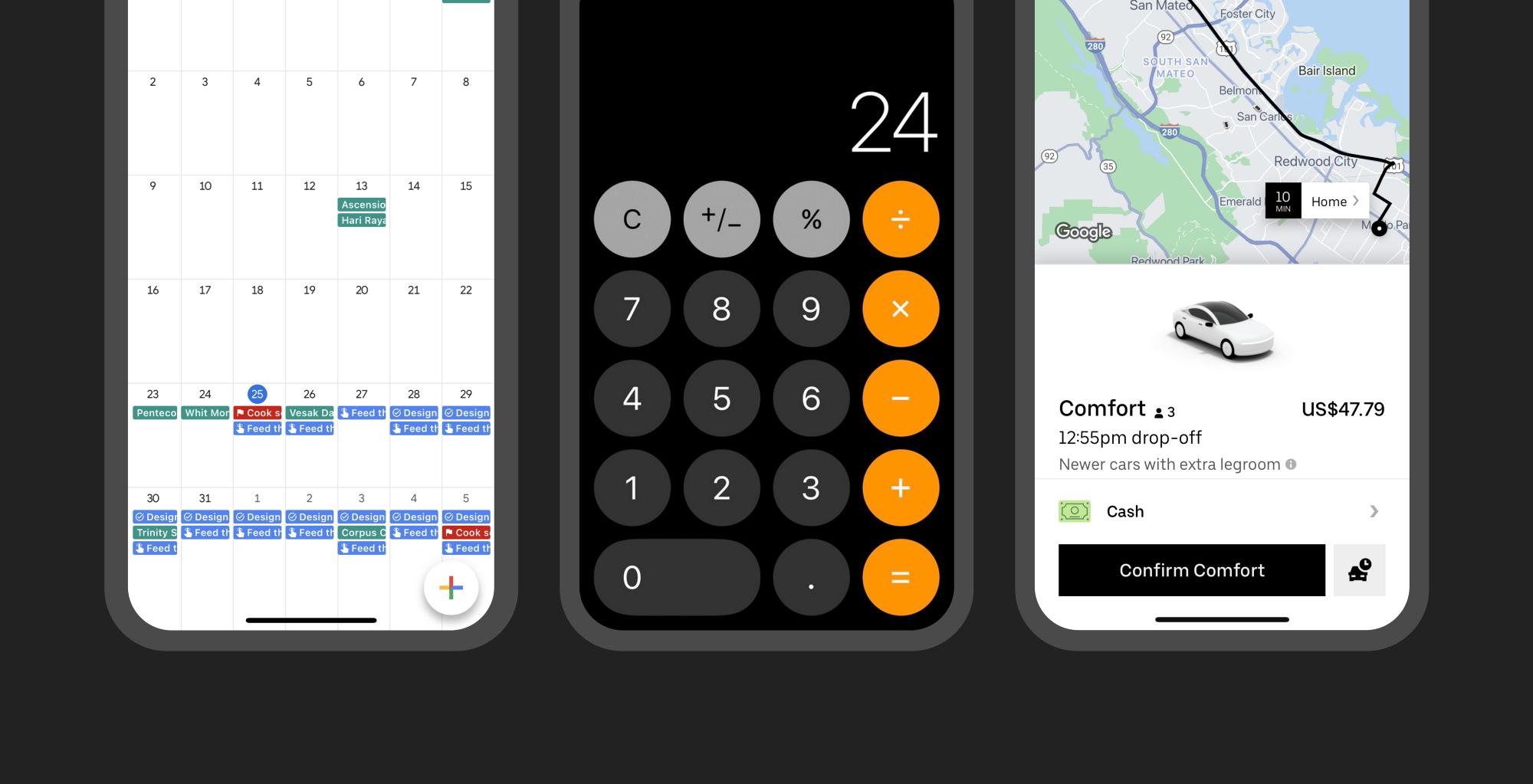 大多数流行的App,如亚马逊、Spotify、YouTube、Pinterest、Twitter、Instagram、Snapchat,都在用导航栏,流行的App都有,但并不意味着你的App也需要,或者你的用户就会喜欢。因为许多App没有导航栏,如计算器、日历、打车应用等。