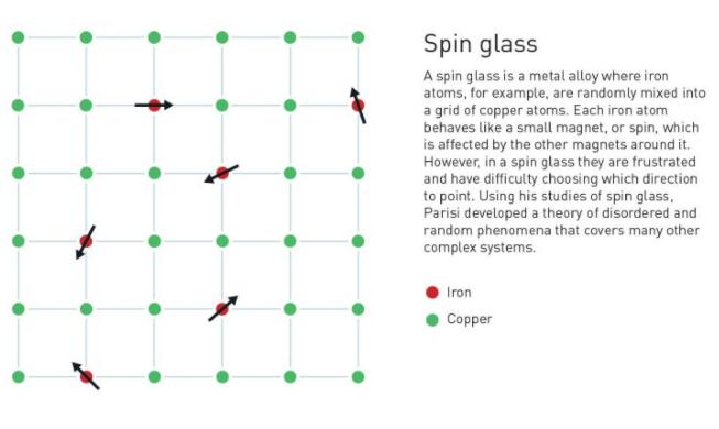 在自旋玻璃模型中,它可以用来描述各种无序材料,也可以描述各种复杂的系统。帕里西发现所有无序副本粒子组合的背后,都有隐藏的结构,同时找到了用数学描述该结构的方案,所以成为了后世复杂系统理论的基石。
