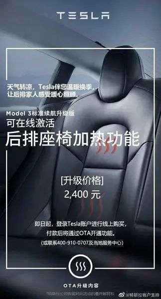 在看到这个模式后,如果你比较关心汽车行业或许就会有很强的既视感,这不就是特斯拉所惯用的方式吗。例如国产版Model 3可付费激活后排座椅加热功能,有或者是为Model 3长续航全轮驱动版提供的付费加速提升服务,在用户支付14100元进行解锁后,将通过OTA的方式推送更新,使得其百公里加速能够从4.6秒提升至4.1秒。