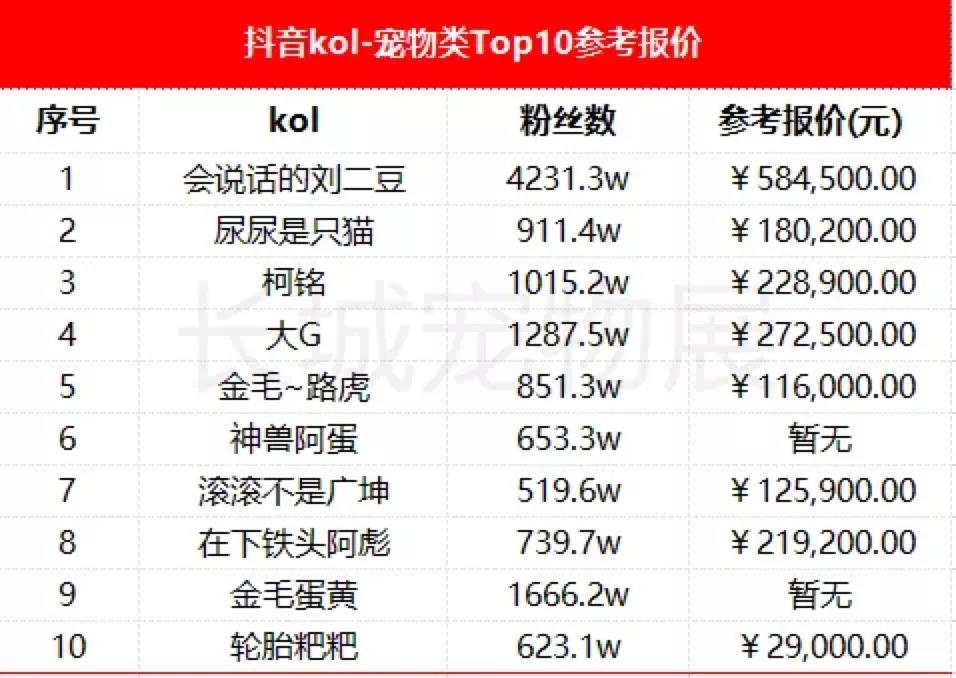 这些带货数据让宠物网红的身价大幅提升。长城宠物展报道称,在2019年12月2日至8日,抖音kol-宠物类Top10中,“会说话的刘二豆”商业合作报价已经达到58.45万元,“轮胎粑粑”报价为29万元。宠物博主“三猫”就曾在一期视频中透露,依靠全网一千多万粉丝,自己这两年内的收入达90万。