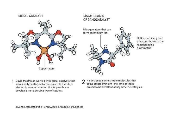 二人研究的不对称有机催化剂,既便宜又环保,将分子构造推向了一个新的高度。