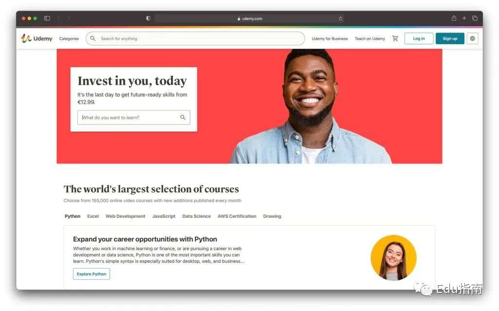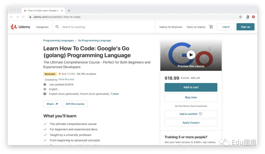 Udemy平台课程,最初直接面向消费者的C端,后来扩展了B端业务Udemy Business (UB) ,为企业机构提供了一个员工培训和开发平台,可以订阅访问数千门课程、学习分析以及托管和分发自己内容的能力。