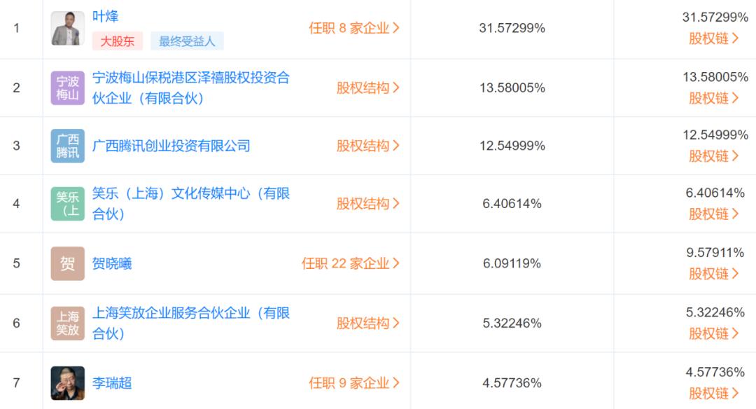 这句话之所以需要打引号,是因为大众认知与实际情况存在偏差。脱口秀帝国的创造者之一李诞占股不到5%。