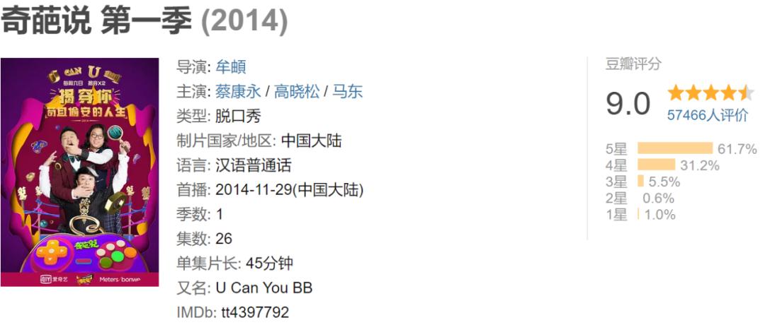 直到今日,仍然有不少网友在知乎等平台表示,《奇葩说》第一季改变了他的三观。是以,其评分高达9.0,为系列最高。