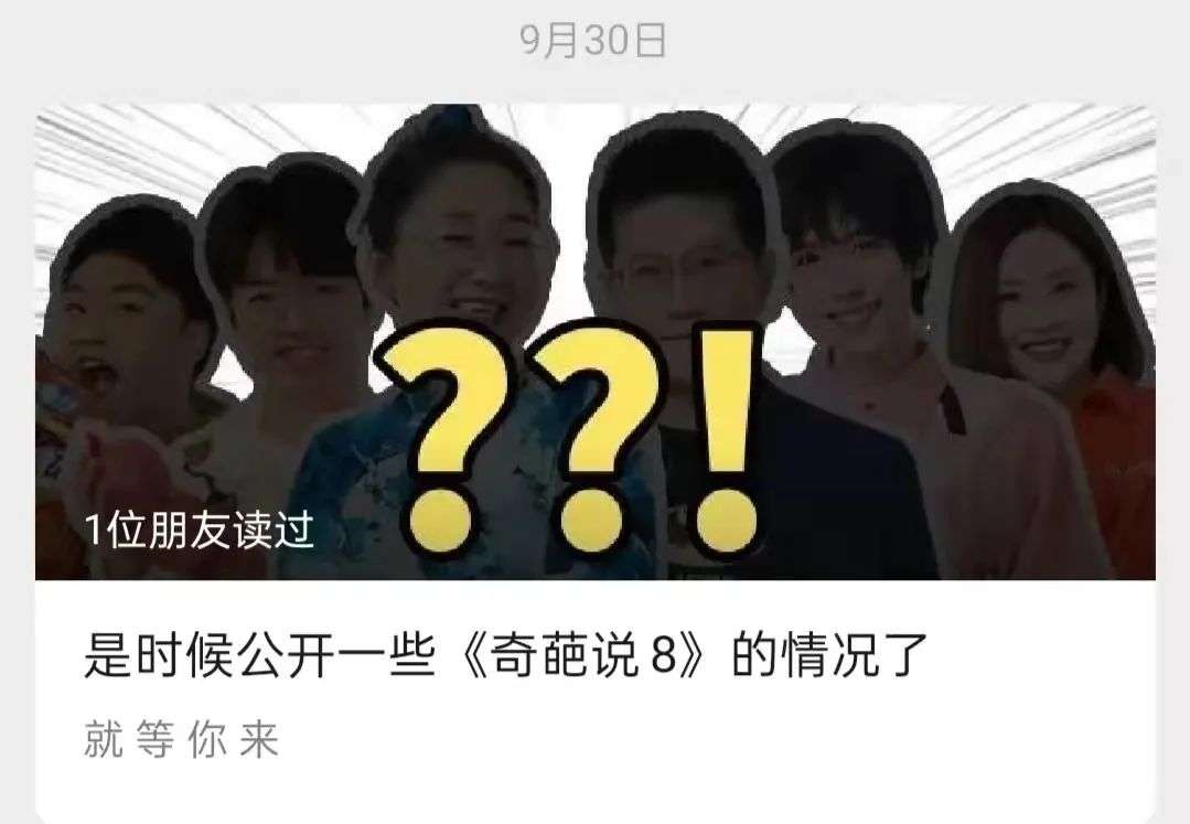 9月30日,米未传媒公众号“东七门”发文,表示《奇葩说》第八季正在启动,将在北京、上海、南京等城市的14所高校开启选拔。