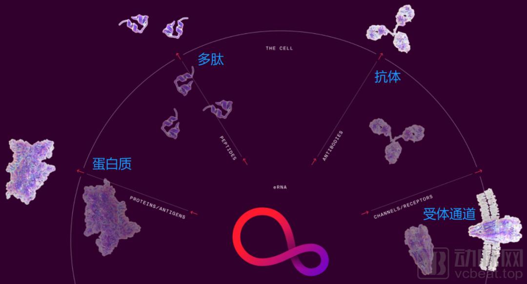 eRNA™的“蛋白编码盒”可以指示机体合成多种蛋白质,包括多肽、酶、抗体、受体通道等类型。这种编码的可能是无限的,支持患者体内自身表达能够治愈疾病的任何蛋白质,这将取代或增强目前几乎所有的药物模式。Laronde也正在迅速扩展以支持多个疾病领域的项目并行开发。