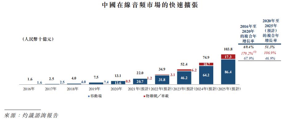 CIC发布的研报显示,中国在线音频市场收入已从2016年的16亿元增长至2020的131亿元,CAGR高达69.4%,未来商业化潜力巨大。