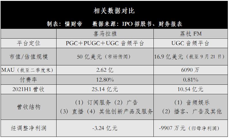 但其股价表现并不尽如人意,截至9月21日美股收盘,荔枝FM总市值仅为1.69亿美元,约合人民币10.96亿元。而据市场传闻,喜马拉雅最新估值约为50亿美元,约合人民币323.57亿元。