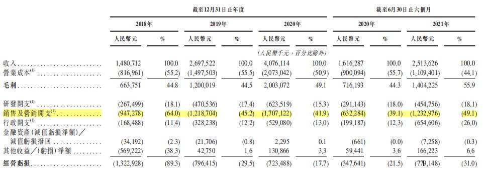 招股书显示,2021上半年,喜马拉雅销售及营销开支高达12.33亿元,占总营收比为49.1%。而前三年,喜马拉雅营销费用占比一直在40%以上。这是因为喜马拉雅没有自己的流量池,只能从外部购买流量,也就是花钱买用户。