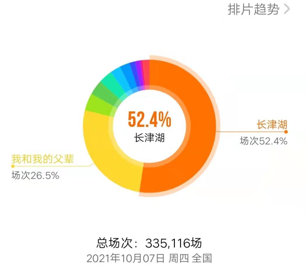 如同任何行业的“二八定律”一样,国庆档也未逃出。《长津湖》以绝对的压倒性优势狂揽31亿票房,第二名《我和我的父辈》票房逾10亿,其他数部影片票房均未过亿。票房呈现“爆款”和“巨亏”冰火两重天式行情,如同春节档的《唐人街密探3》和《你好,李焕英》占据了八成的票房。根据业内人士预测,国庆档的《长津湖》以及《我和我的父辈》最终或能吸收国庆档大约90%的票房能量,剩下的电影票房几乎很难破亿。