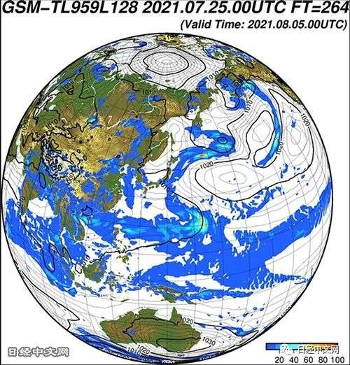 基于2021年7月25日上午9点的大气情况对8月5日上午9点的降雨量进行预测(图片由日本气象厅提供)