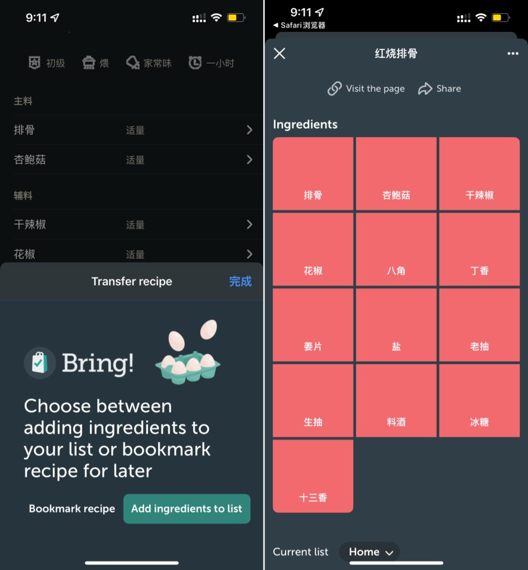 尽管 Bring! 应用本身暂时没有提供中文页面,但并不影响其 Safari 插件对中文食谱的识别。不过要完成应用内默认的全部食材的中文版本替换可能会需要花费一定精力。如果你需要这样一款 App,可以在App Store中免费下载。