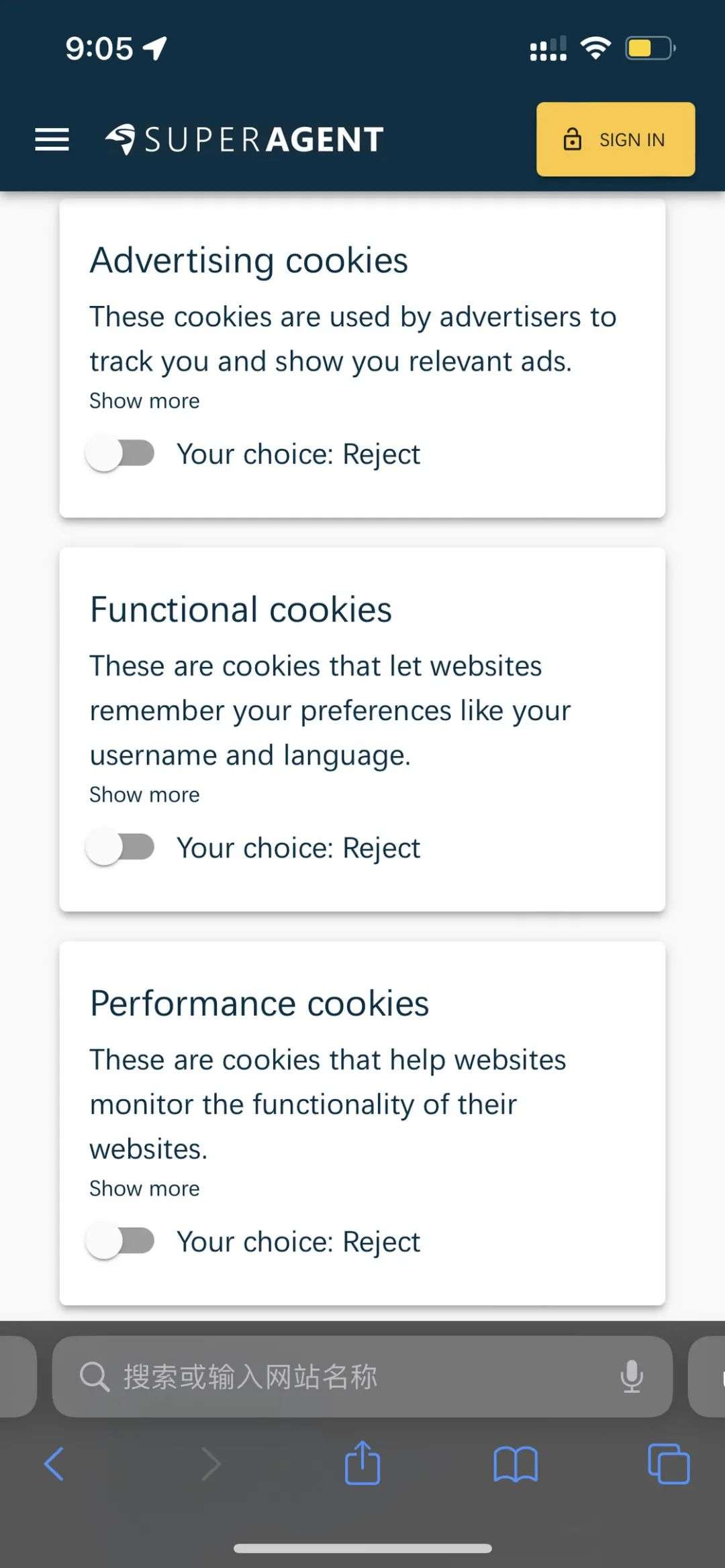 Super Agent 提供了一个更方便的解决方案。在下载应用并开启扩展后,Super Agent 会默认自动拒绝所有的非必要 Cookie。你也可以在其设置页面针对每一类 Cookie 进行自定义。