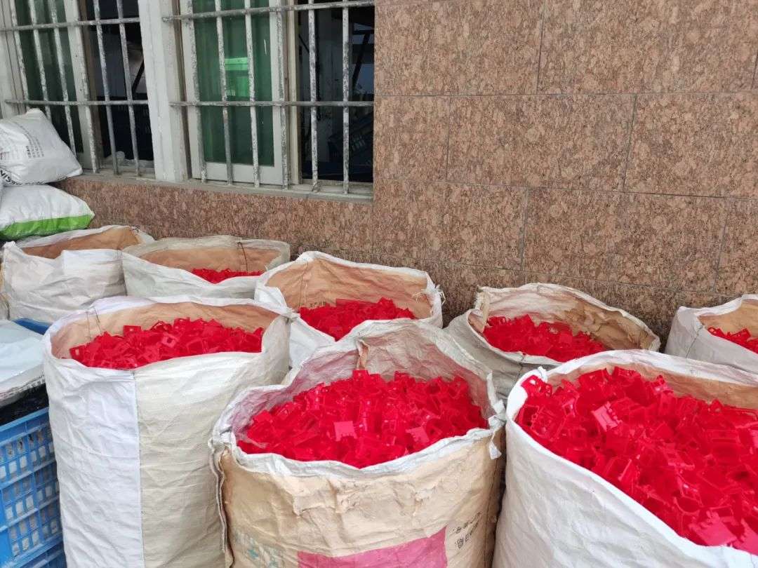 这边街头巷尾都轰隆隆响,大门敞开,里边堆满机器,巷子里都是这种家庭作坊式的玩具厂,员工数不到10人,生产的玩具配件装袋后扔在门外。