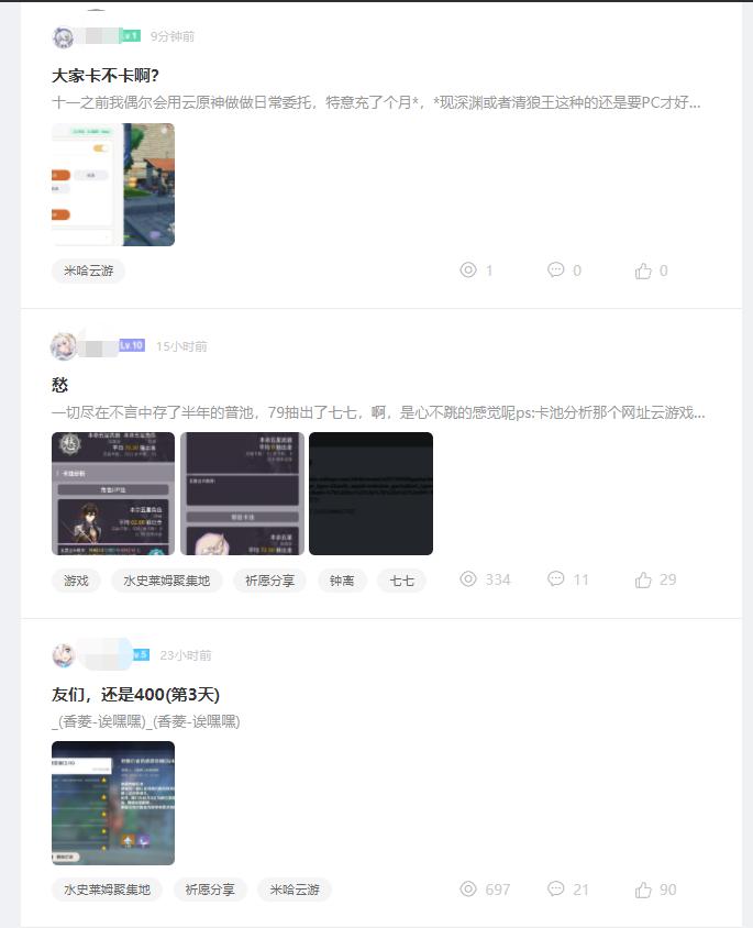 米游社上对《云原神》的讨论频率并不高