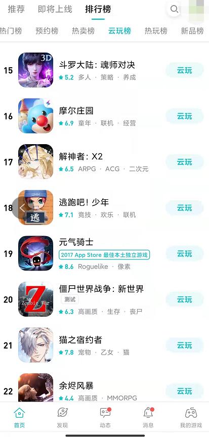 把3A大作放在手机上云玩,或许难度过大。那么把主流手游放在手机上云玩,至少省去了跨端优化这一环,这类云游戏更容易落地,思路依旧是“让云游戏先跑起来”,它们放大了云游戏的工具属性和广告属性,从节省内存和节省下载时间两个出发点吸引玩家。