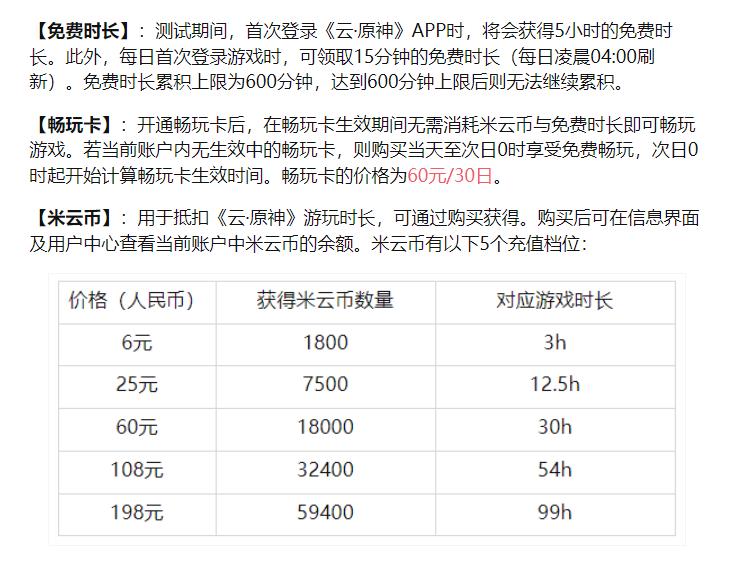 当然,玩家还需要为《云原神》付费。