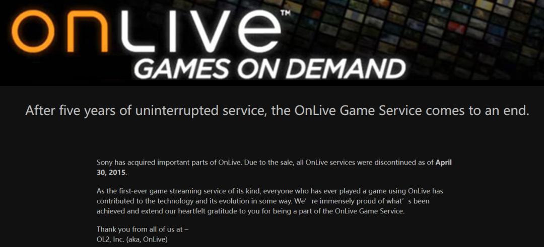 2009年,海外云游戏公司Onlive喊出这番壮志豪言。遗憾的是,Onlive在经营的第3年就被爆出陆续遣散员工,第5年正式关停。人们把Onlive的折戟归结为显卡算力不足,带宽条件较差,和无法第一时间拿到热门游戏版权。如今在Onlive的官网里,你还能找到一封关停前对玩家的感谢信,却找不到这三个问题的答案。
