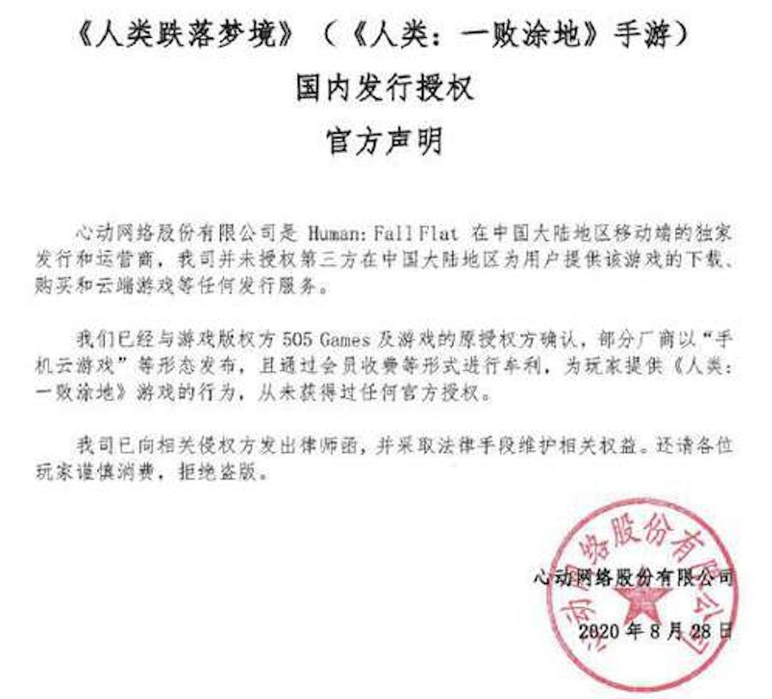 其次,他们还要应对的是版权风险。或许在一开始,这类平台还可以在“被发现前”偷偷把3A大作上云。但当越来越多的厂商发现自己的游戏并没有授权就被放到云游戏平台上,这类平台等来的便是一系列澄清声明。