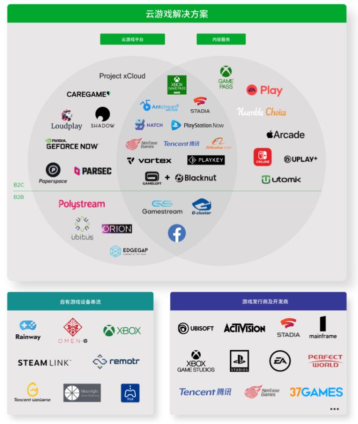 但这并不妨碍云游戏市场变得更热闹了,参与云游戏图谱里的玩家成分更复杂,布局云游戏的公司也更多了。