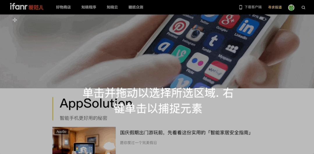 在浏览器中点击该插件后,会出现一个提示,表示你可以在浏览器页面内框选选区。选区框选好后点击底部录制按钮即可开始录制。录制完成后自动进入编辑界面。