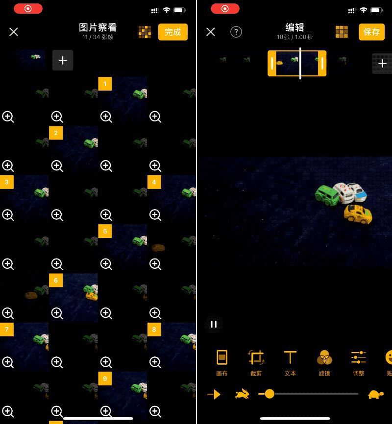 主视图则是图片时间轴,用来选择合适的画面制成 GIF 图。