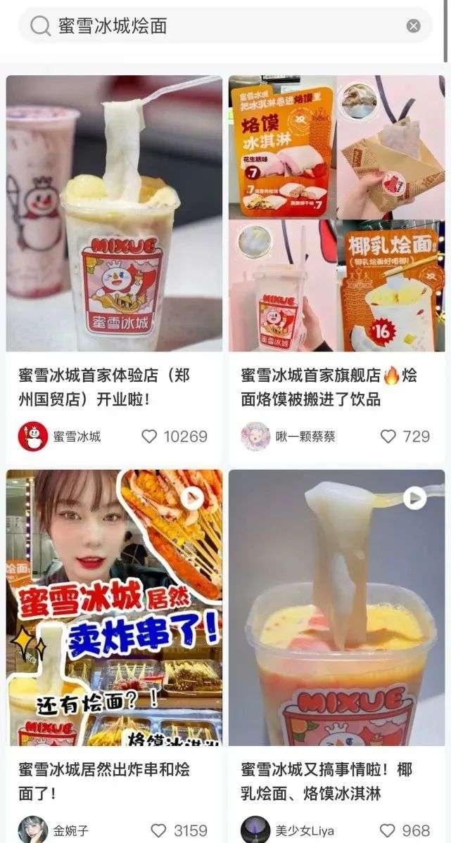 国庆期间,在小红书和部分短视频平台上,“蜜雪冰城烩面”“蜜雪冰城烙馍冰淇淋”成为热门话题。